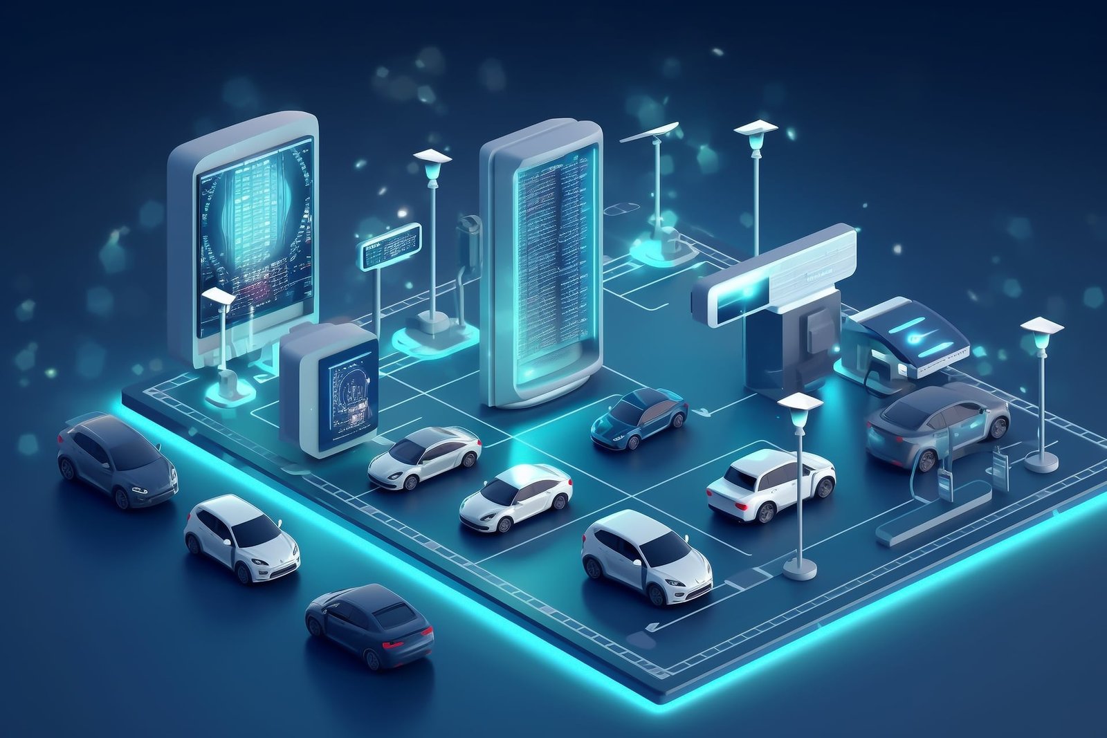 3d rendering driverless car or autonomous car plug in with ev charging station
